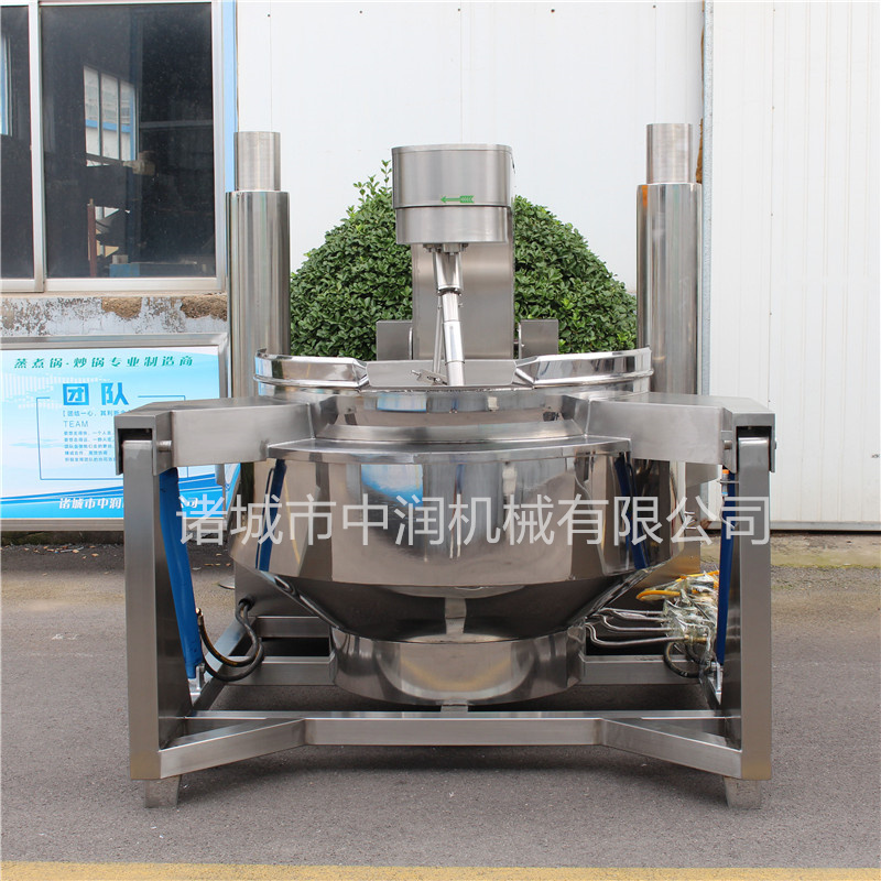 大型全自动炒菜机主要由锅体、架体、搅拌系统、加热系统、调速传动装置、搅拌轴、锅体翻转系统等组成。按加热形式分为:蒸汽加热、燃气加热、电加热导热油、电磁加热四种加热方式。按搅拌形式分为:行星式、多爪式。
